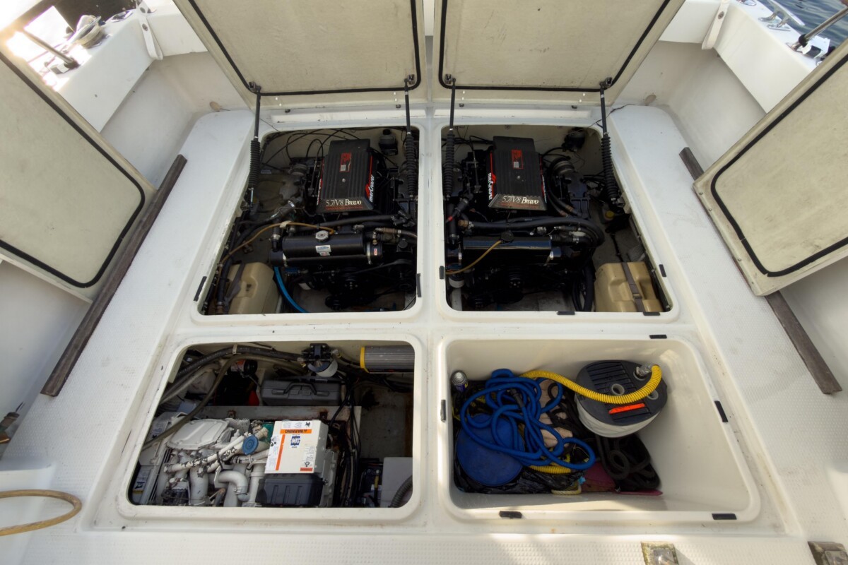 - Pumps: Pentair 12V domestic water pump, Hitachi 12V servicing the aft deck shower and sink