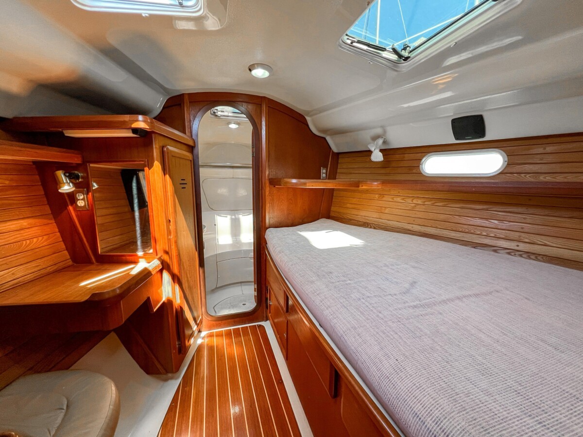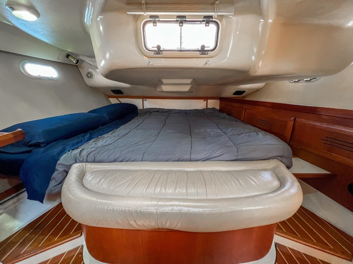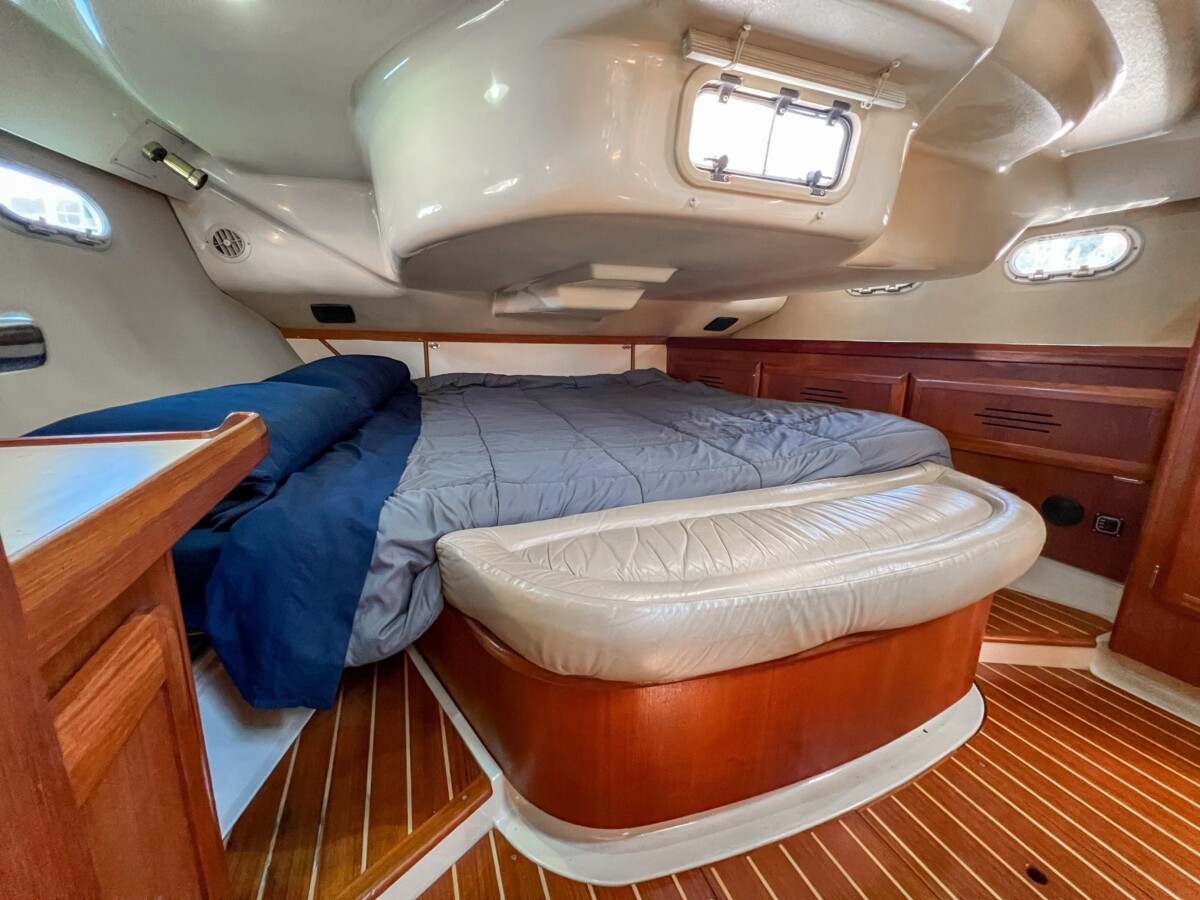 - Berth: Large king berth (beam length, or can be converted to island berth)