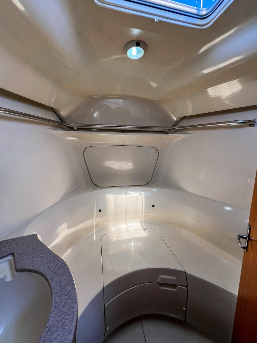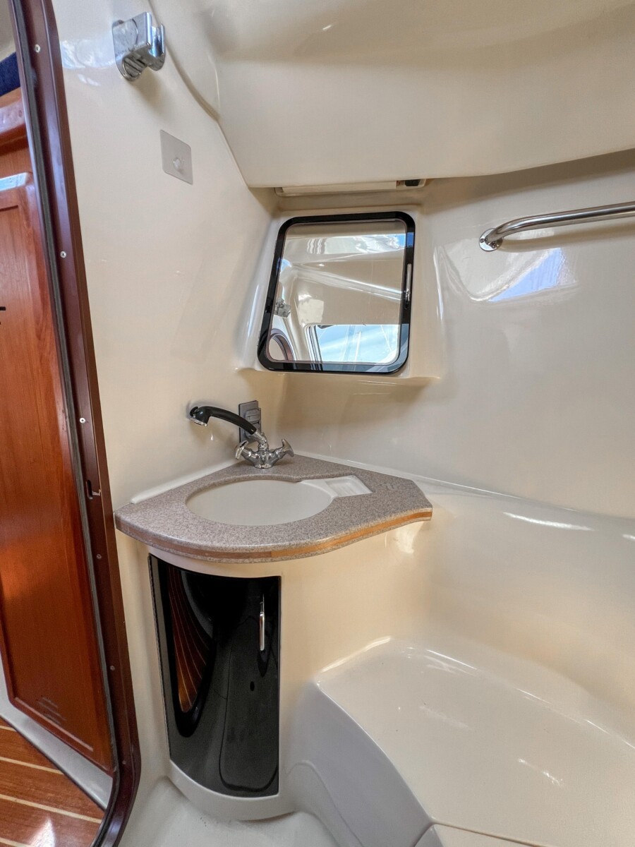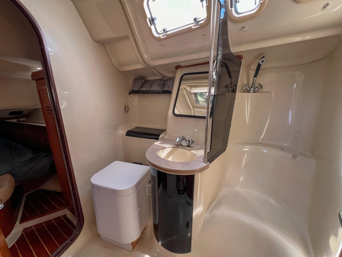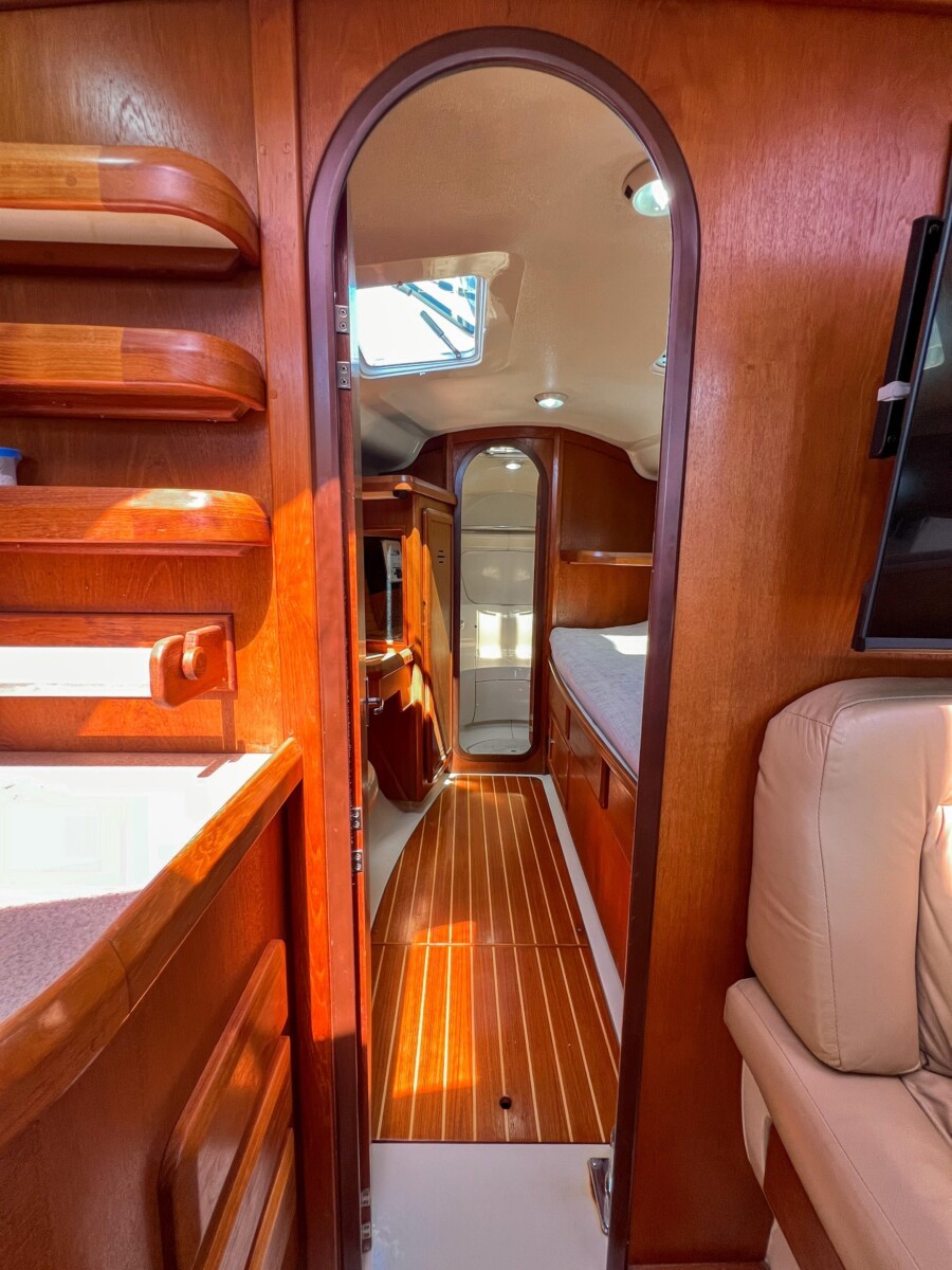 - Berth: Large king berth (beam length, or can be converted to island berth)