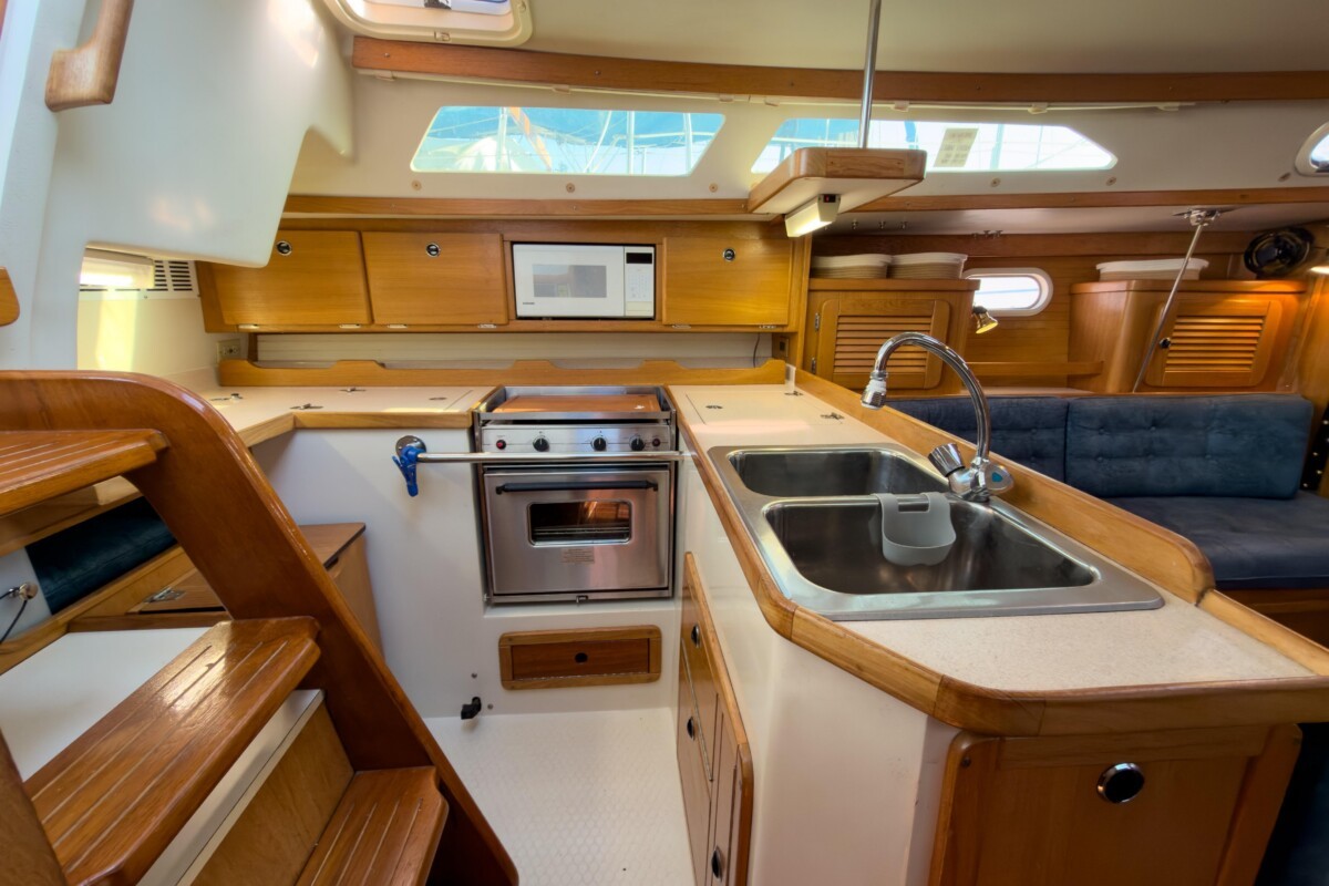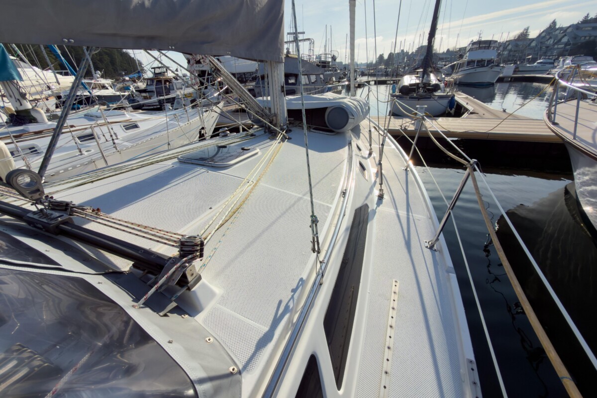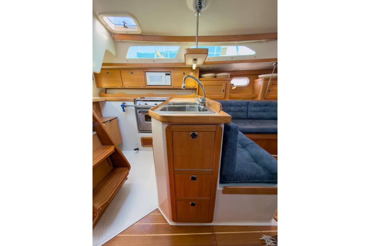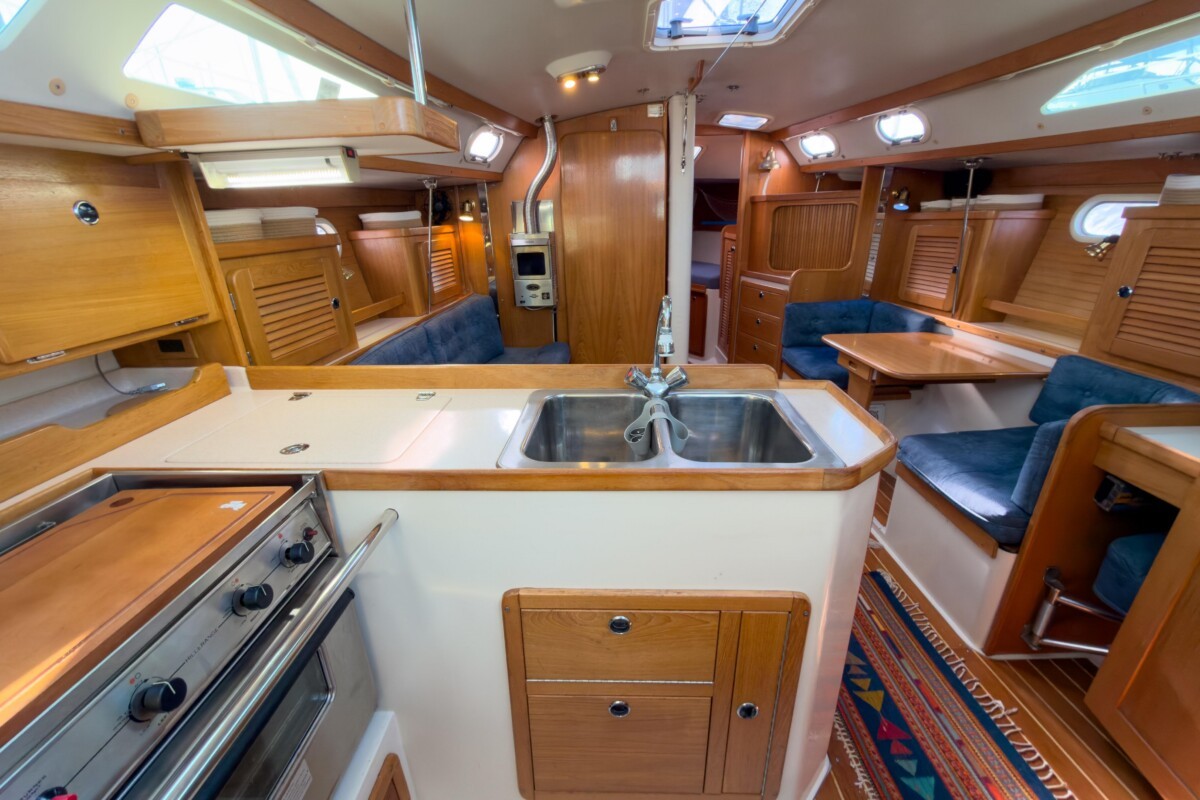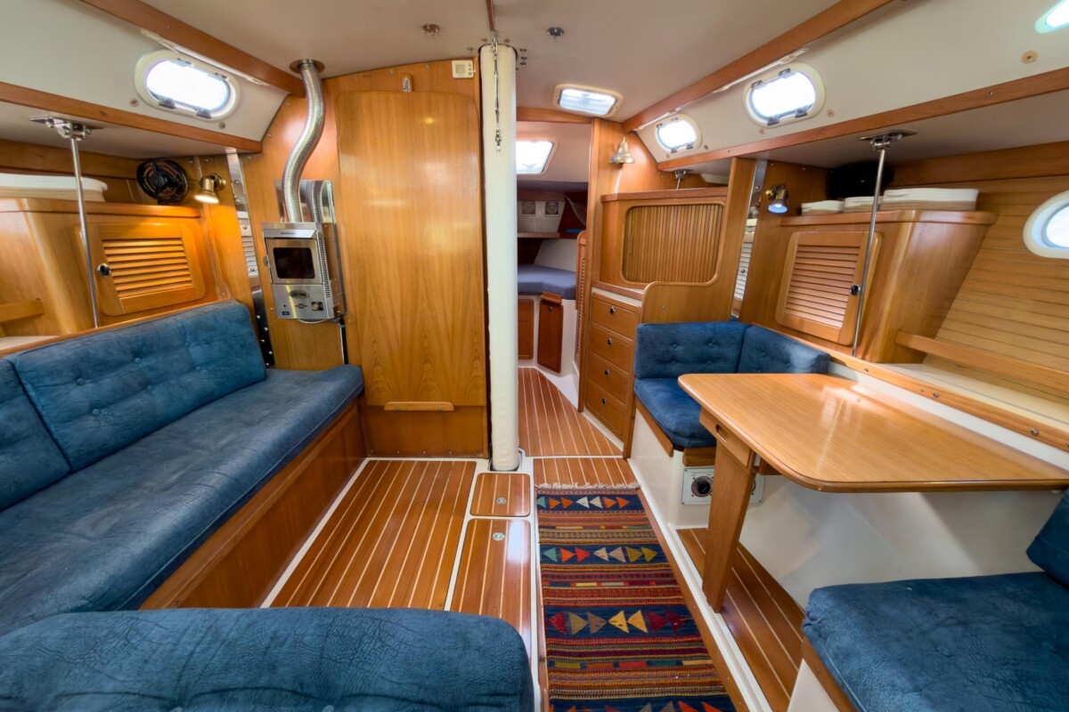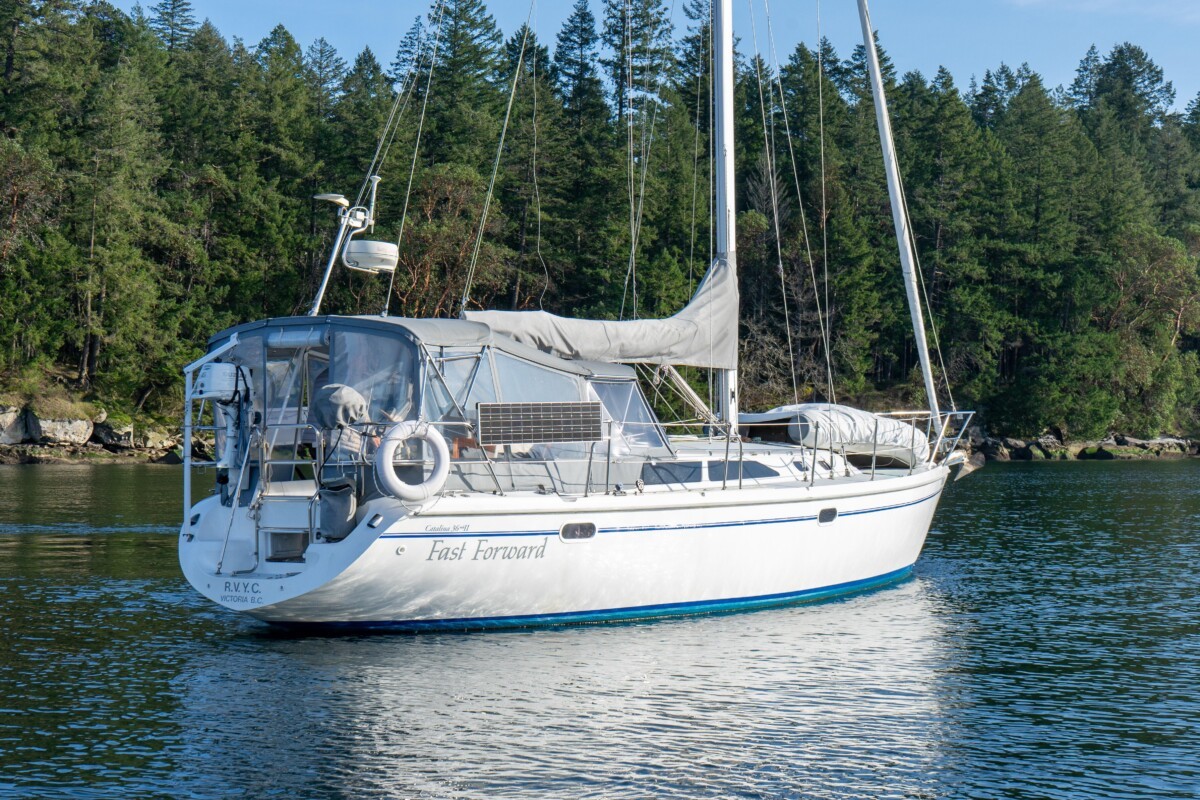 One of Catalina Yachts’ most popular designs, with over 2,300 built, the Catalina 36 is a true home run. The highly functional, mid-sized cruising sailboat offers an impressive amount of useable space, making her feel larger inside than other boats in her class. Combined with an easy-to-handle sail plan and a spacious interior layout featuring two private cabins, “Fast Forward” is an ideal choice for Pacific Northwest cruising or extended stays aboard.