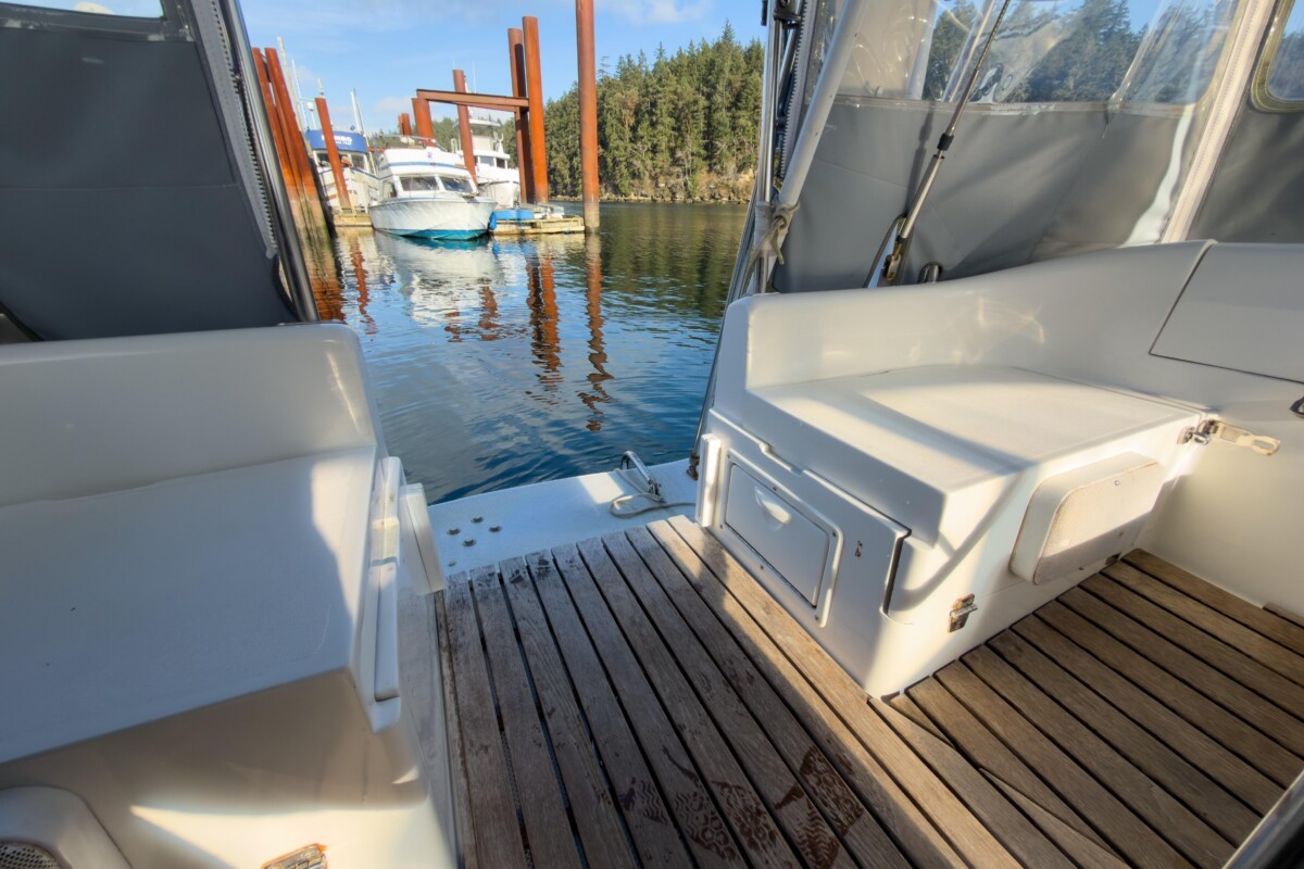 - Steering: Pedestal wheel steering with NavPod navigation setup