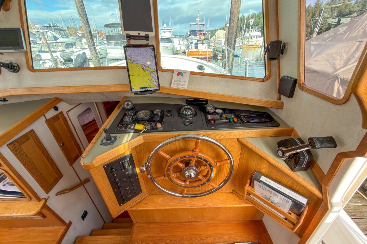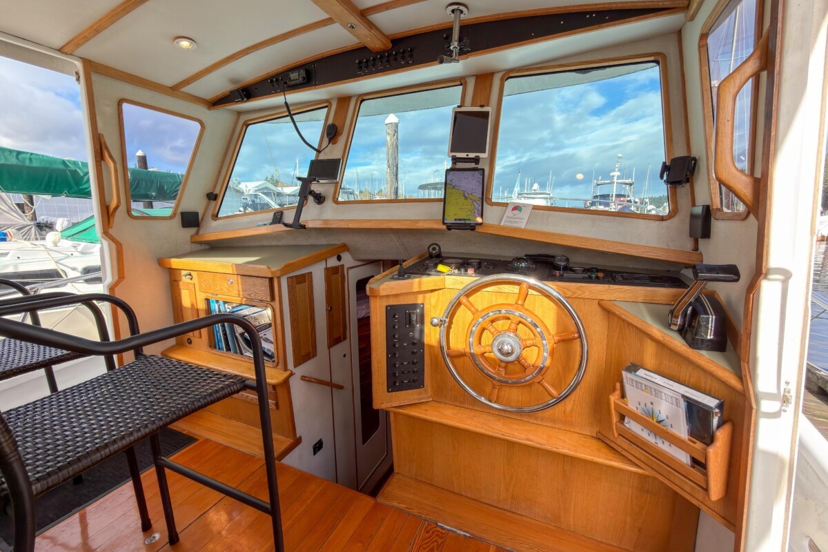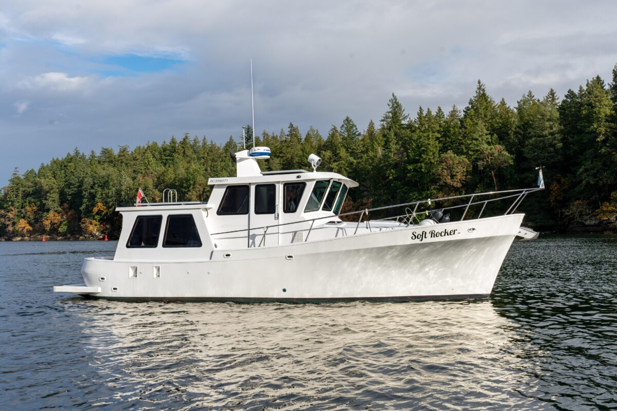 Launched in 2014, this customized 34’ Farrell trawler has been lovingly built and features a well-designed layout that makes it easy to handle by a single or couple. Optioned with a reliable John Deere 115 hp. engine, bow thruster, and Espar hydronic heat, she offers great all-season cruising. The iconic Barry Farrell-designed hulls are proven fibreglass construction, designed for the commercial fishing fleets of the Pacific Northwest. A variety of long cabin and short cabin models were available, making them ideal for rugged pleasure cruising. “Soft Rocker” is perfectly suited for the PNW or North to Alaska.