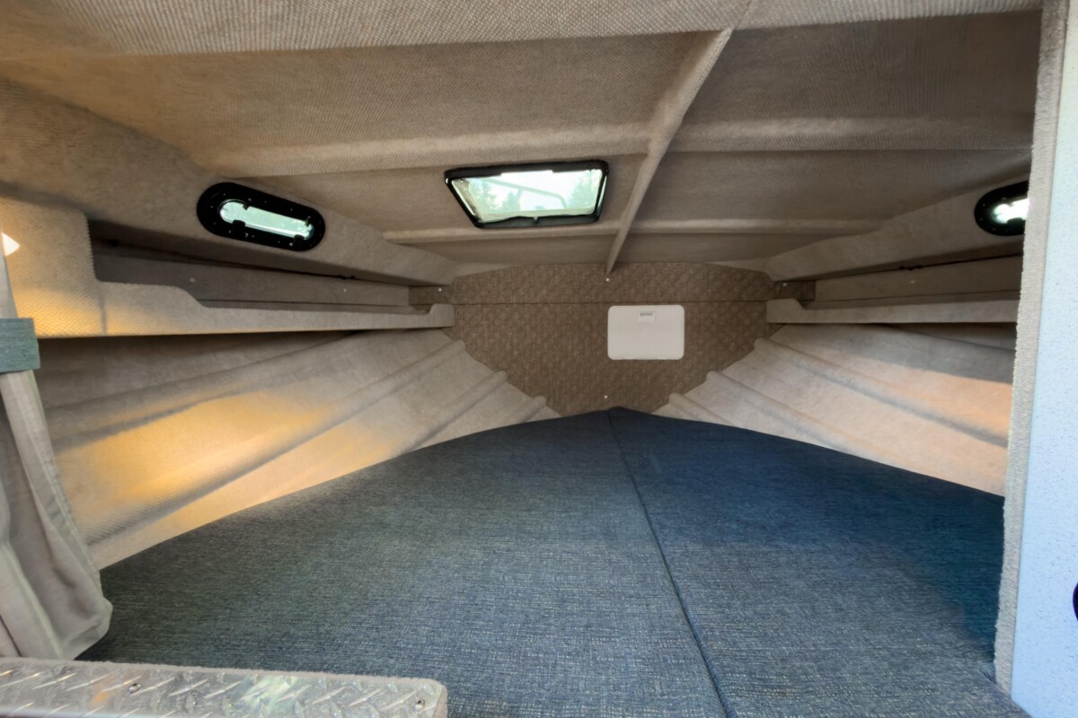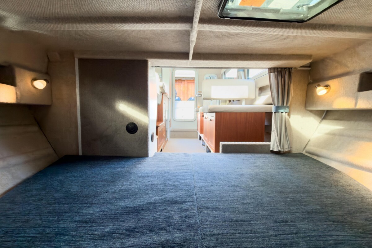 - Carpeted storage compartment in v-berth