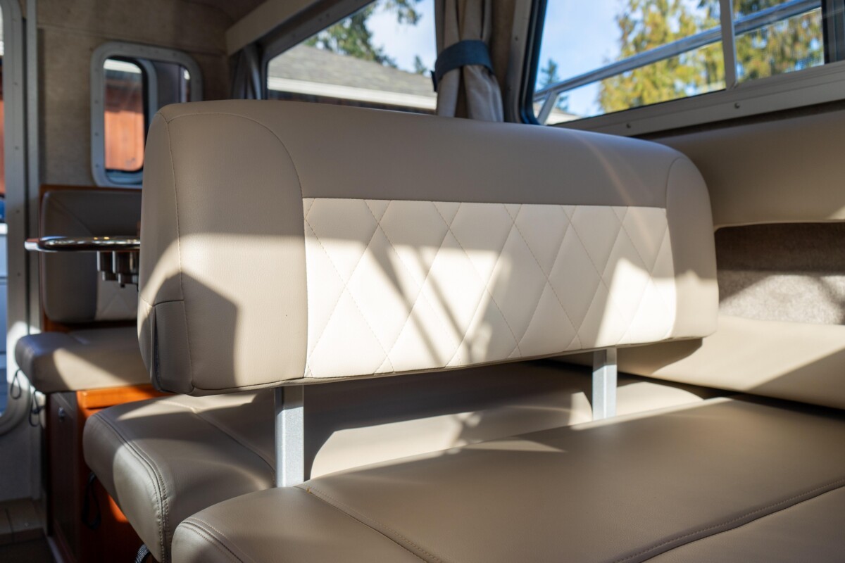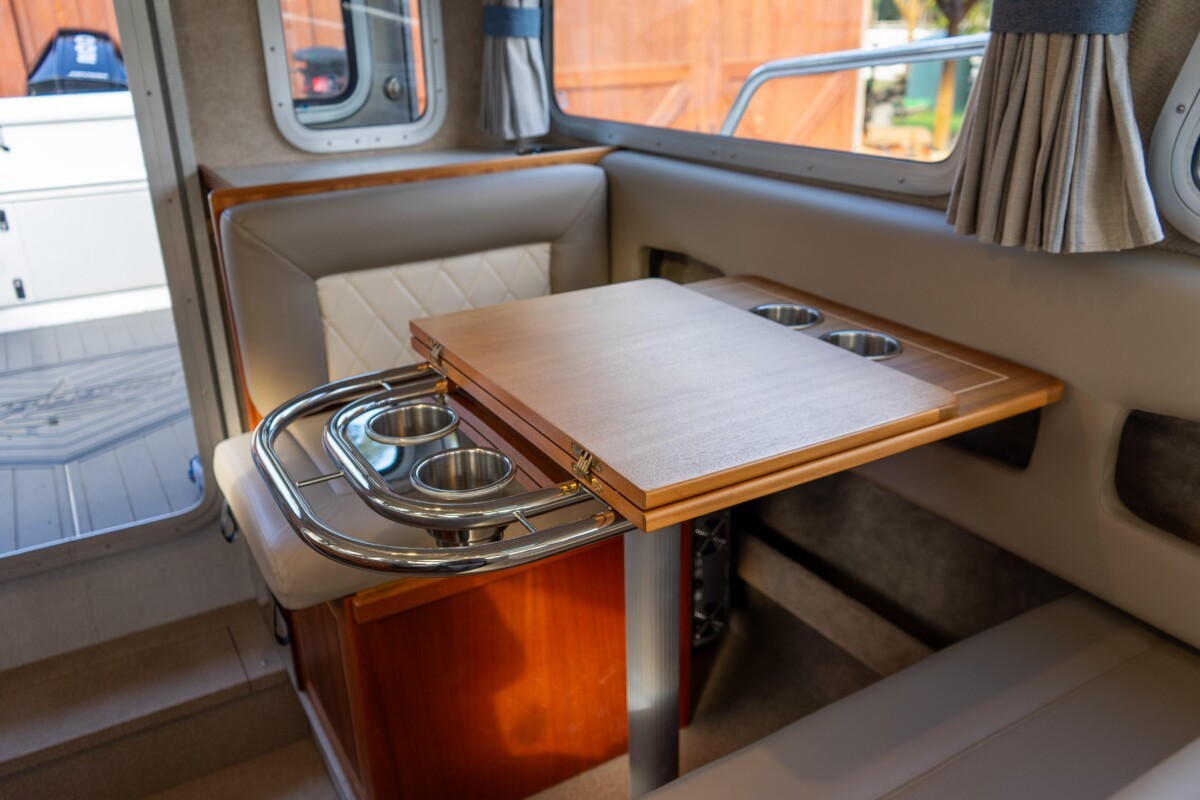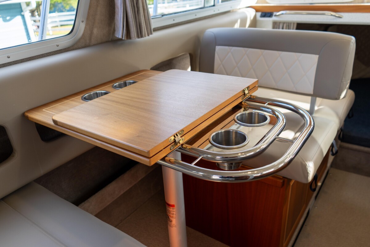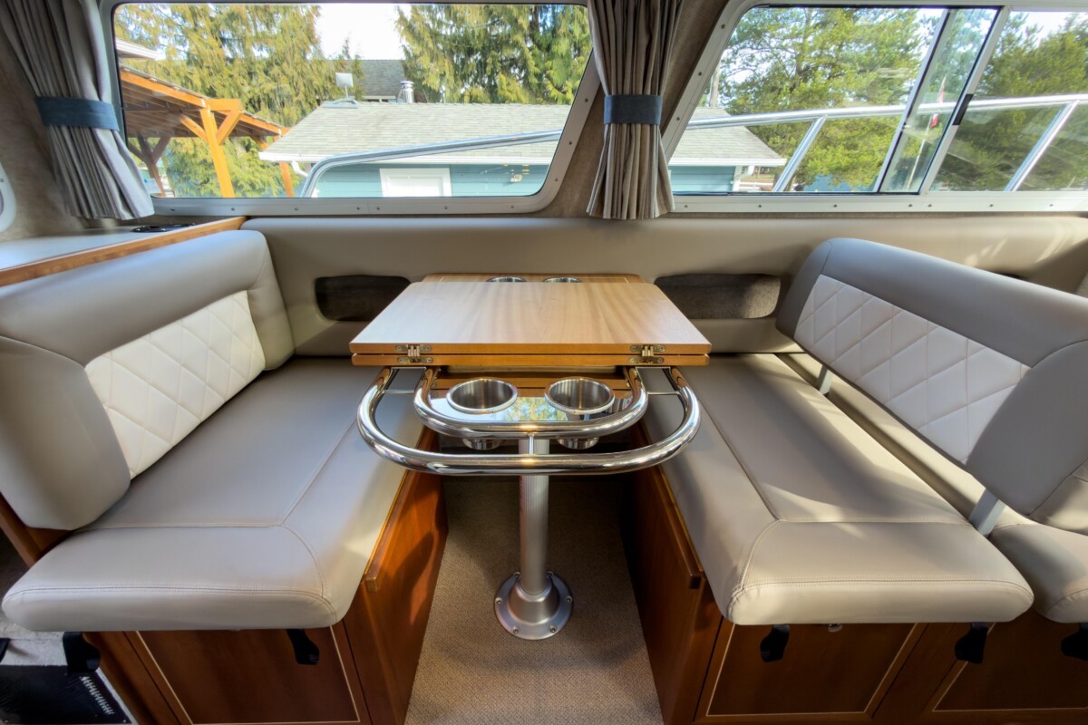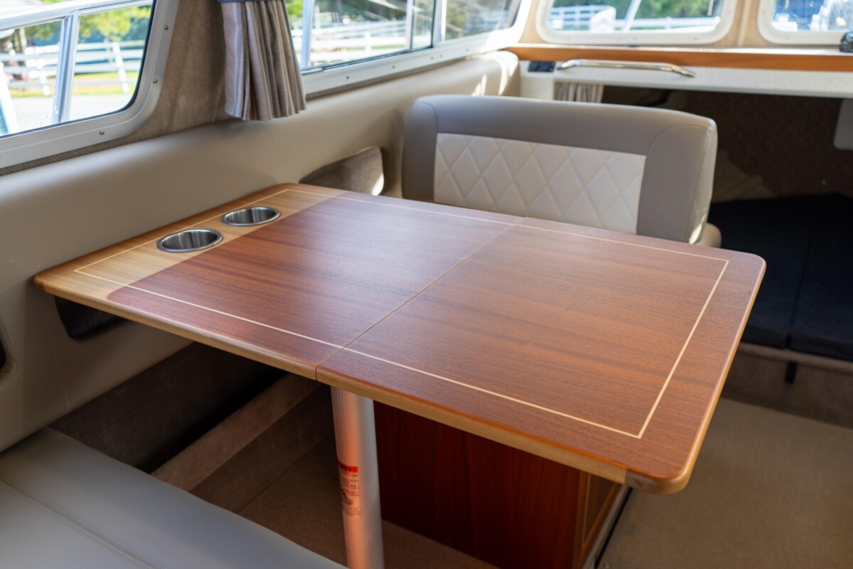 - Port side dinette seating converts to sleeping berth