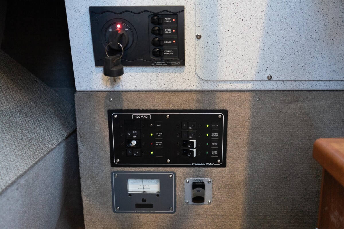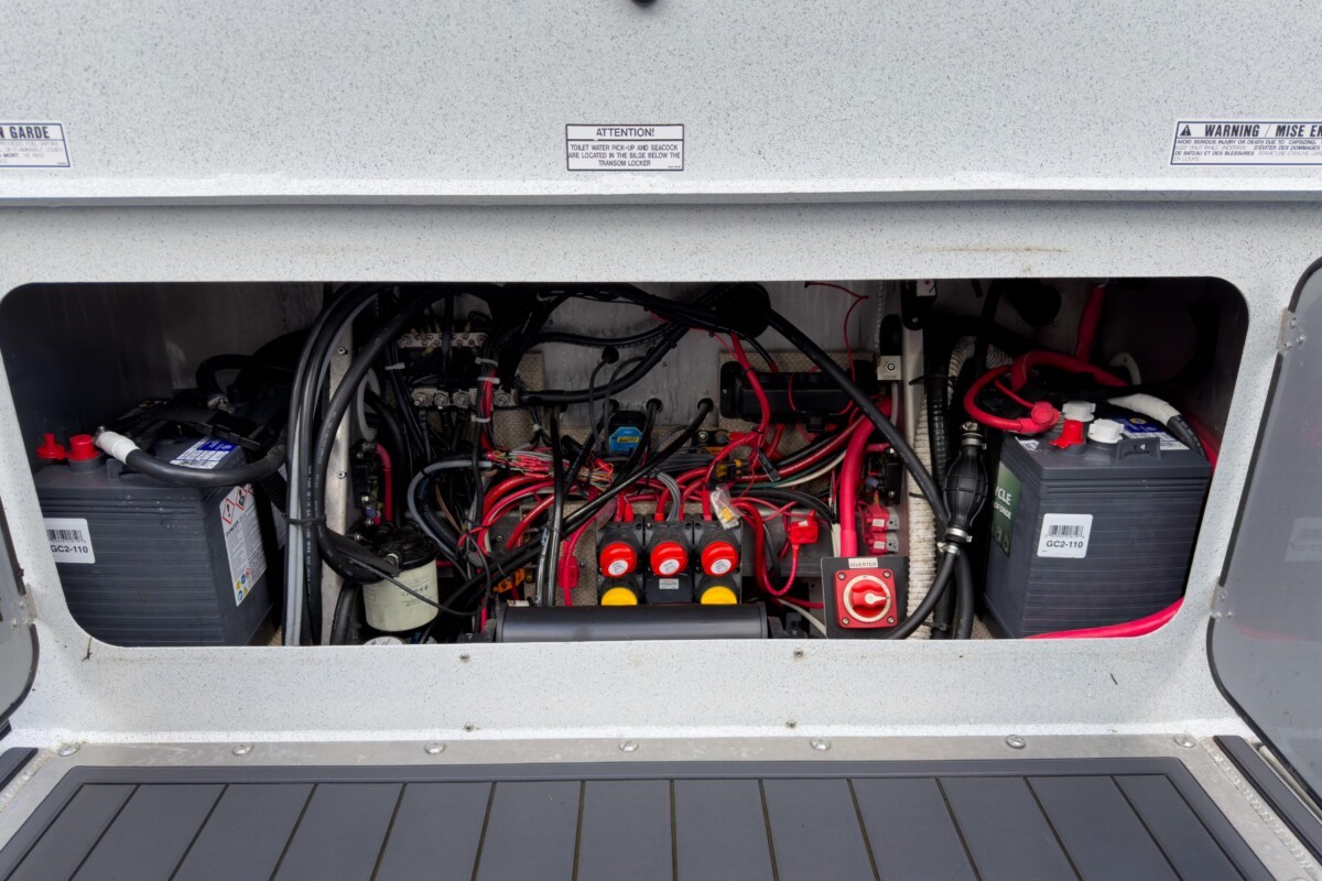- 3 electric 1100 GPH automatic bilge pumps and high water bilge alarm