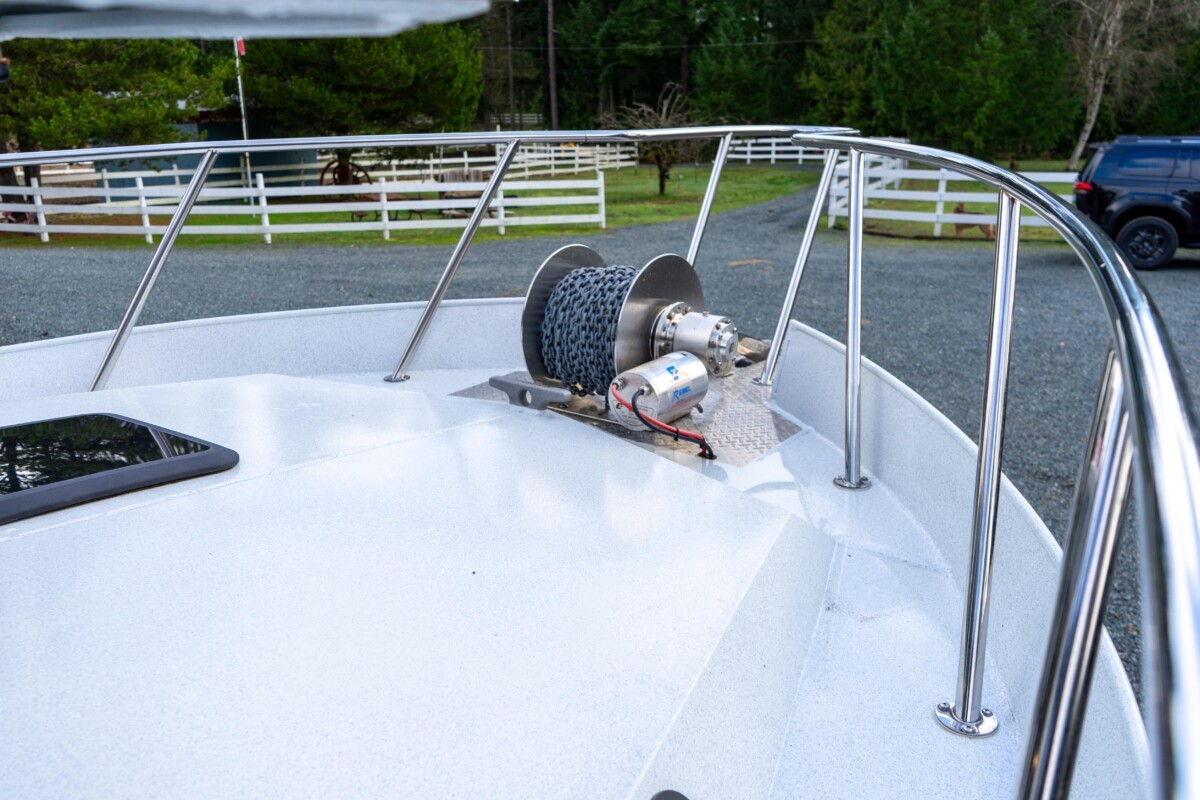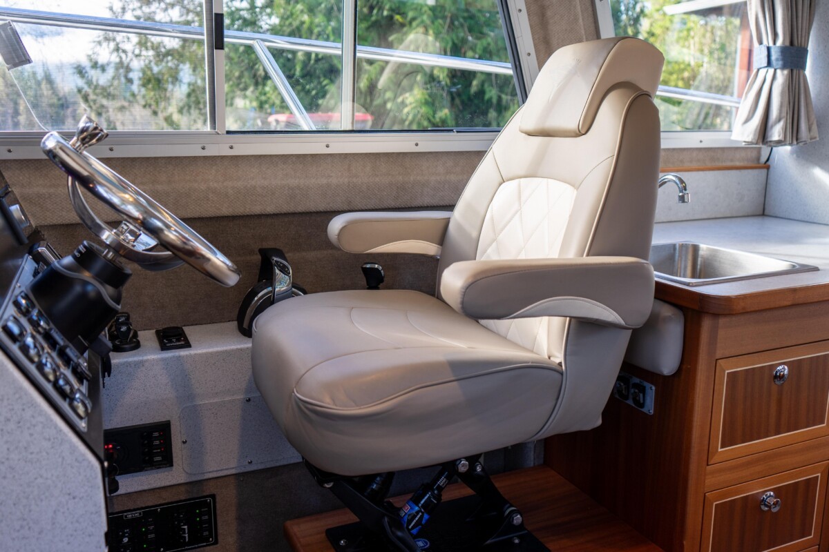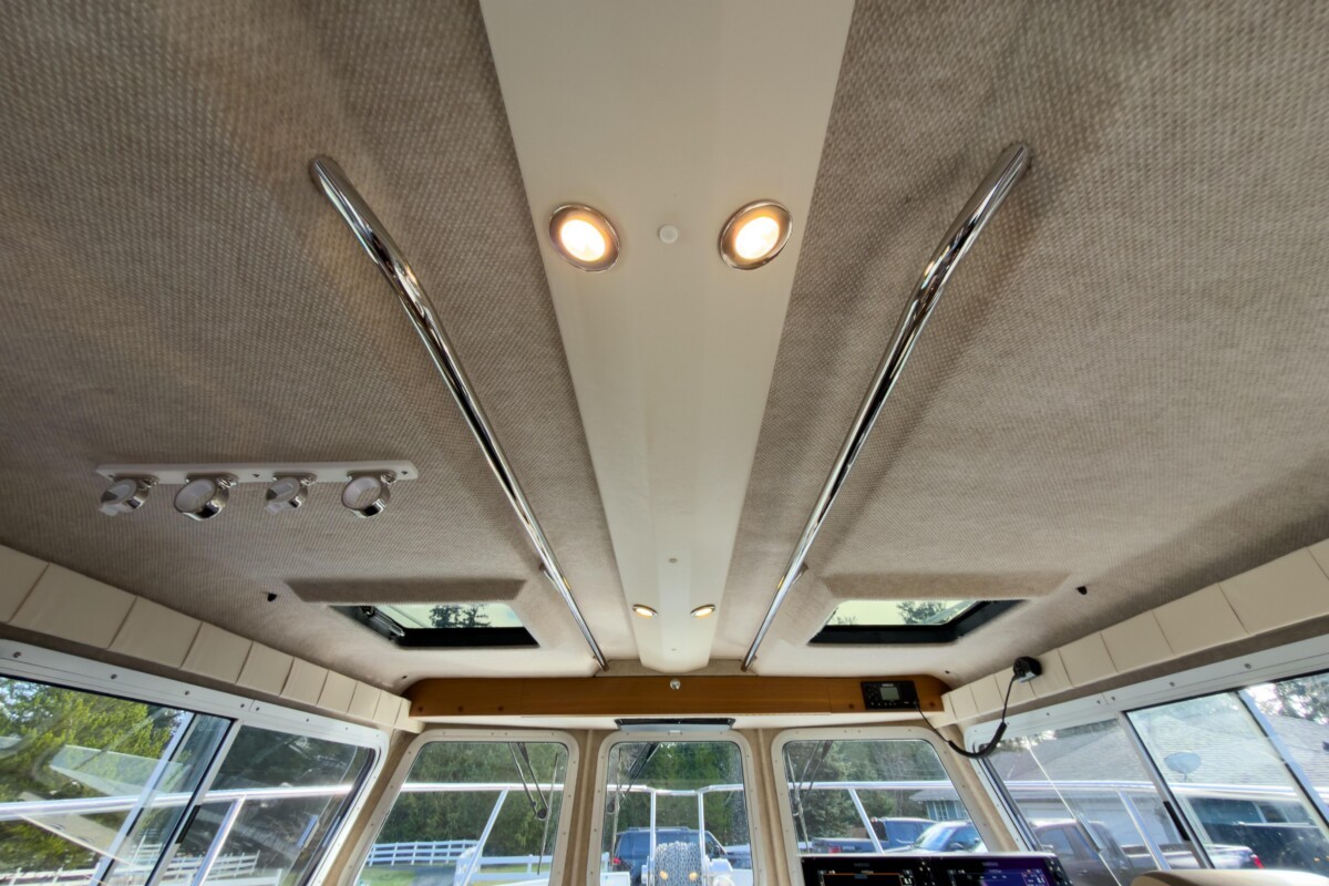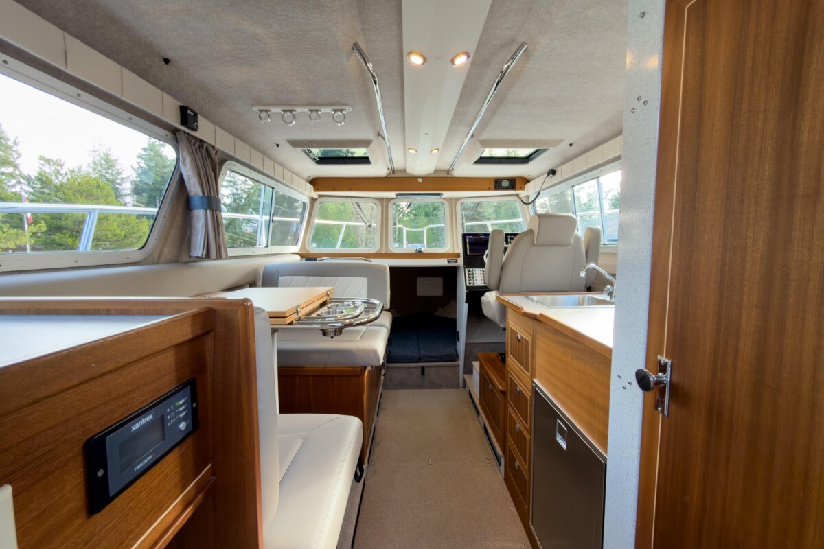 Inside, the Destination package offers a wonderful mix of warm wood tones, tasteful upholstery, and ample surfaces for meal or fish prep! Her diesel heating, stand-up enclosed head, inverter, convertible dinette, V-berth, fresh water system, and Isotherm fridge complete this Pacific Northwest fishing machine!