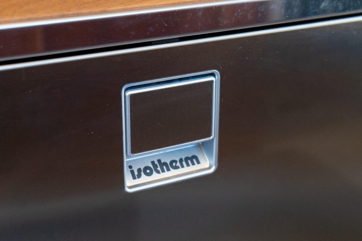 - Starboard side galley includes stainless sink, faucet, 40 gallon freshwater holding tank and fridge