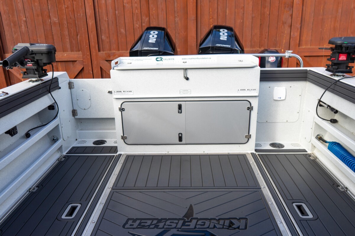 - Raised transom fish locker with cutting board and fish rail